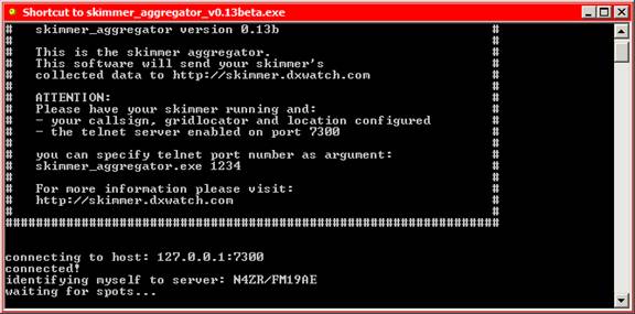 - You can minimize the aggregator now, but keep it running. It will not interfere with anything else you want to do with Skimmer, such as feeding spots to a logging program locally.